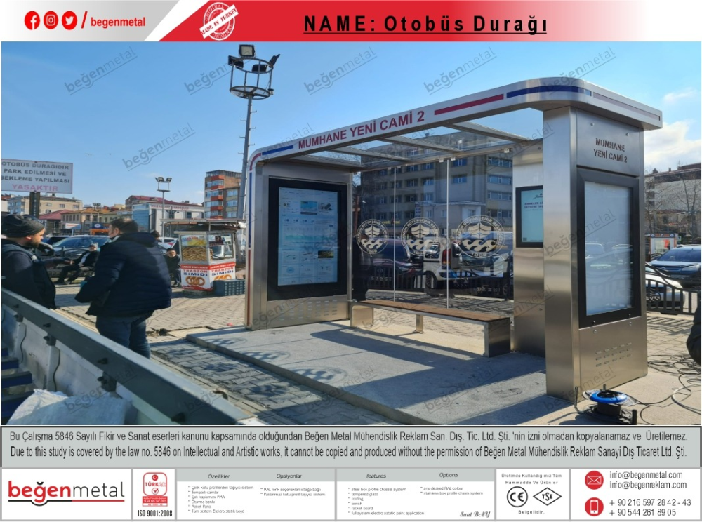 Paslanmaz Dijital Ekranlı Akıllı Durak Üretimi.